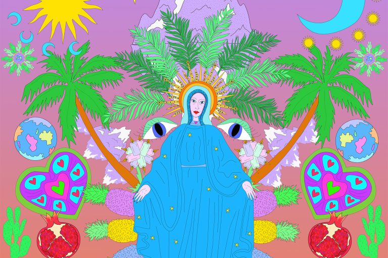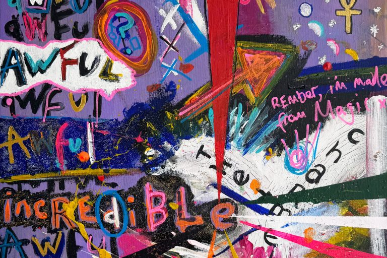 An exhibition of paintings created by Louise Hynes, delving into colourful, gold embellished fantasy and consciousness.