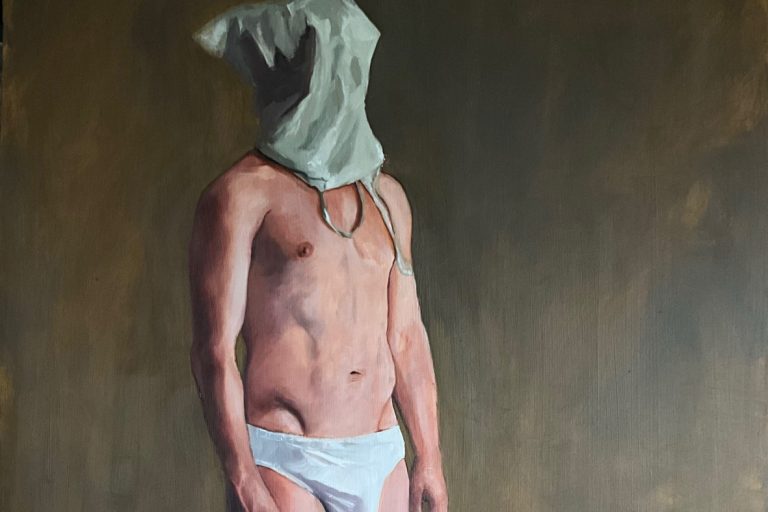 David works primarily in oils, charcoal and pencils. His traditional, figurative style consciously contrasts with the topics of his paintings. Sometimes narrative, often tender, his oils celebrate queer moments which he feels have been underrepresented in the history of art. There is a sense of intimacy which is the fruit of his observation of and conversations with his models.